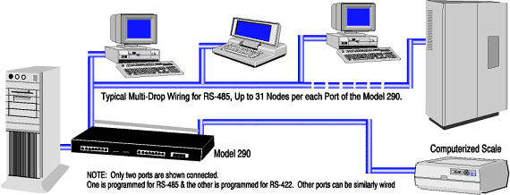 of the Model 290 in the RS-485 mode of operation can support up to 31