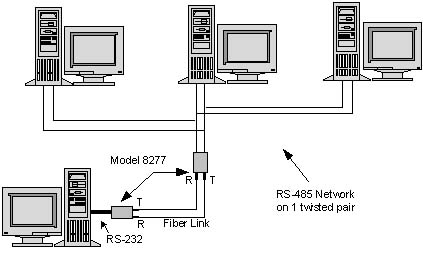 Note: In RS-485 two-wire mode (when configuring the Model 8277 in an optical ring) the master cannot be enabled by the "TD" signal. The Model 8277 optical interface can form a ring of up to ten units. This