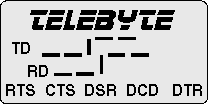 El despliegue LCD tambien indica la condición de las líneas de contról RTS, CTS, DTR, DSR y DCD. Estas señales son presentadas con símbolos mnemotécnicos compuestos de tres