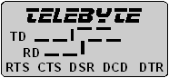 La información en el LCD consiste de una representación gráfica de las líneas TD (Transmit Data) y RD (Receive Data). Cada una de estas señales se observan como normalmente se ven en un osciloscopio. Normalmente, TD y RD estan en el nivel bajo o nega-tivo. Cuando hay comunicación , la señal transmitida se sube al nivel positivo. Estos dos (2) niveles estan marcados con los seg-mentos del LCD horizontal, uno a bajo nivel (mano izquierda) y el otro a alto nivel (mano derecha). El segmento bajo representa el nivel de voltaje negativo, la condición 'mark' o "1" , mientras que el segmento de voltaje positivo , es la condición 'space' o "0". La barrita vertical entre los dos segmentos siempre está encendida mientras halla energía. En los casos cuando hay comunicación los dos segmentos palpadean y la intensidad de los segmentos te dan una indicación de la velocidad de transmisión.