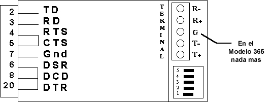 | 3. | RS-485 4 Hilos Transmisor con-trolado TD | ON | OFF | OFF | OFF | ON |