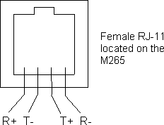3.2.2 Phone Plug - The Model 265 is equipped with a standard RJ-11 modular phone connector, only the 4 middle pins are used. The designation of the wires is shown below: