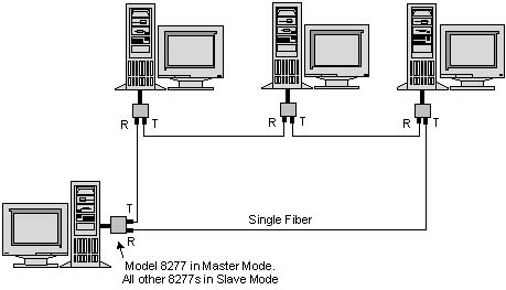 Note: In RS-485 two-wire mode (when configuring the Model 8277 in an optical ring) the master cannot be enabled by the "TD" signal. The Model 8277 optical interface can form a ring of up to ten units. This