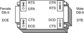 Connectors: DTE = DB-9M, DCE = DB-9F