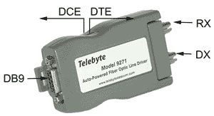 The Model 9271, Auto-Powered Fiber Optic Line Driver, provides full duplex, asynchronous communication over two fibers. The Model 9271 will allow for communication in harsh/hostile environments