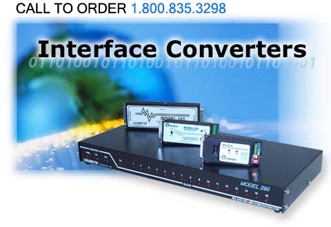 Telebyte offers a wide variety of Interface Converters that facilitate the connection of devices utilizing different interfaces. Now you can overcome the barriers presented by multiple standards. Our Interface Converters allow you to connect RS-232 to RS-422, RS-485 EIA-530, V.35, X.21 and Mil Std 188. Furthermore, they allow conversion to fiber optic cable from RS-422, RS-485, T1/E1, Ethernet and much more. Units may be non-powered, power stealing, full duplex, rack mounted, multimode, single mode, optically isolated and more. |